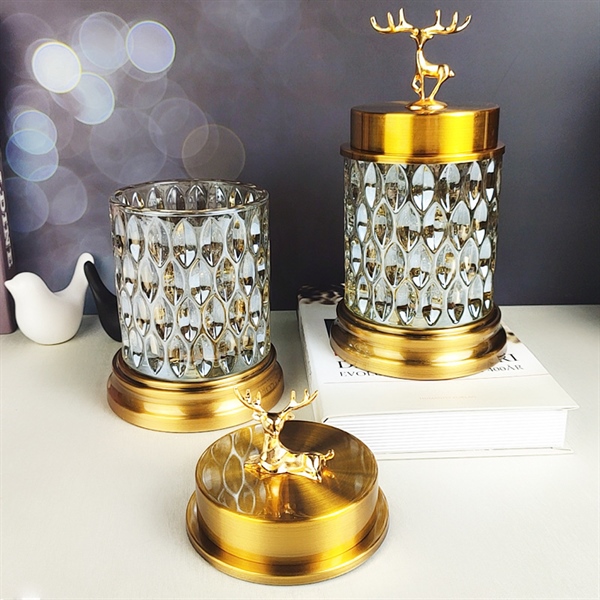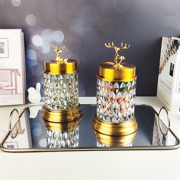 Hũ thuỷ tinh cao cấp đế kim loại nắp hươu nằm